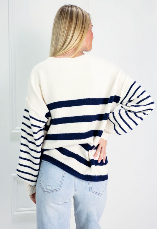 Block Stripe Sweater Navy/White
