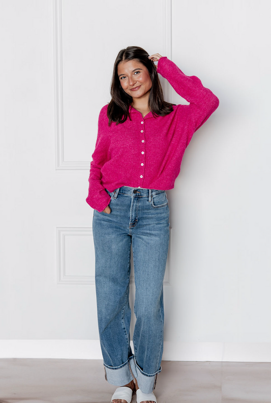 Hot Pink Button Up Sweater