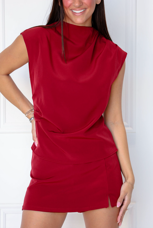 Mock Neck Top & Skirt Set of 2 Wine