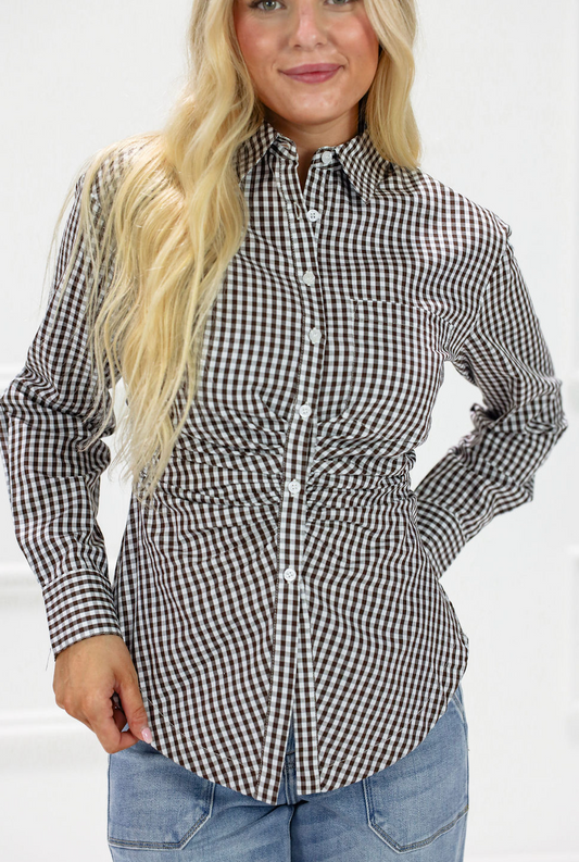 Brown Gingham Shirt Blouse
