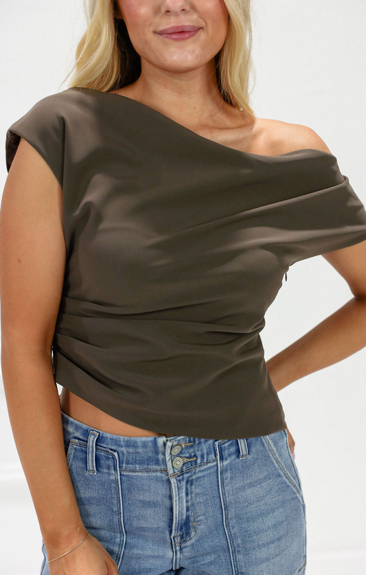 Anahi Asymmetrical Shoulder Top Brown
