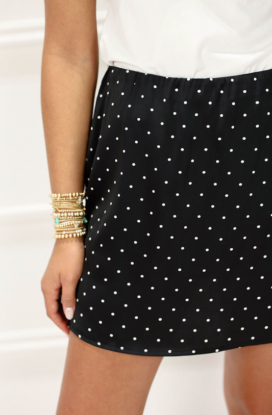 Polka Dot Satin Skort Black