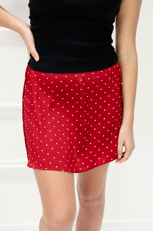 Polka Dot Satin Skort Red