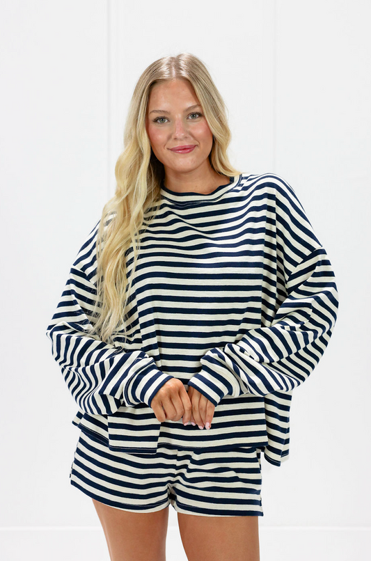Navy Striped Pullover & Shorts Set Of 2