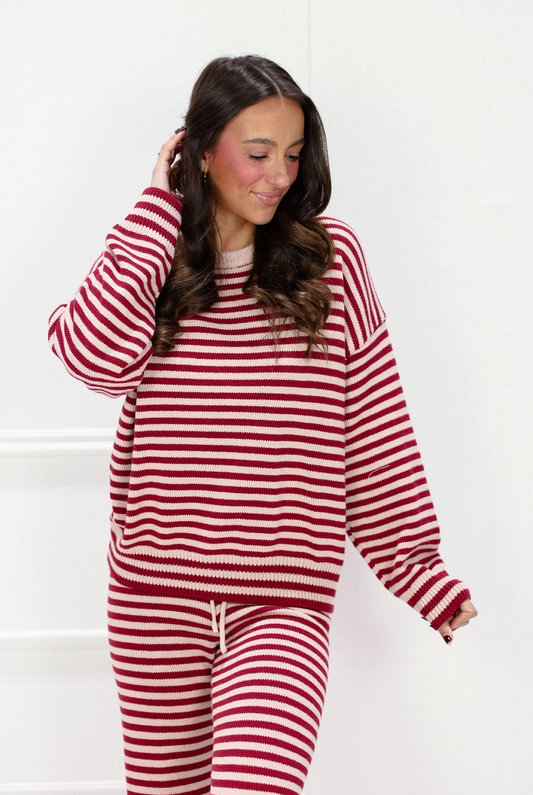 Wine/Pink Stripe Sweater & Pants Set of 2