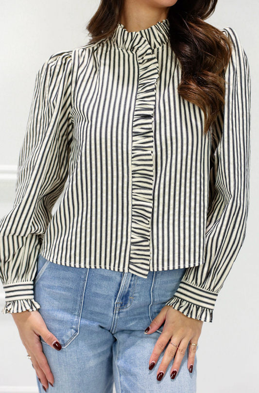 Black Stripe Ruffle Detail Blouse