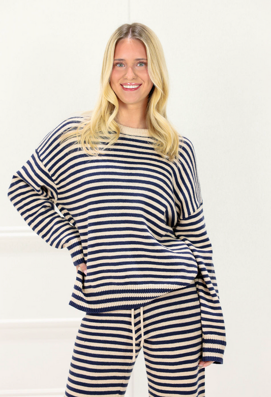 Navy/Tan Stripe Sweater & Pants Set of 2