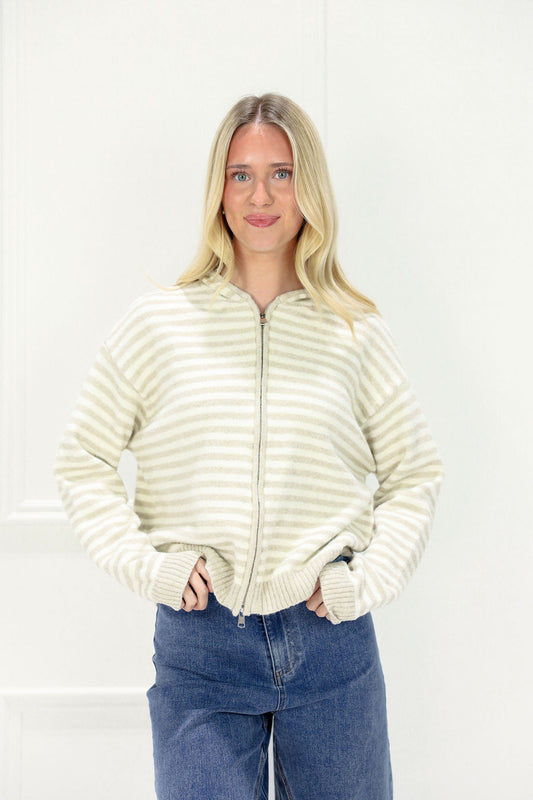 Oversized Stripe Zip Up Sweater Taupe