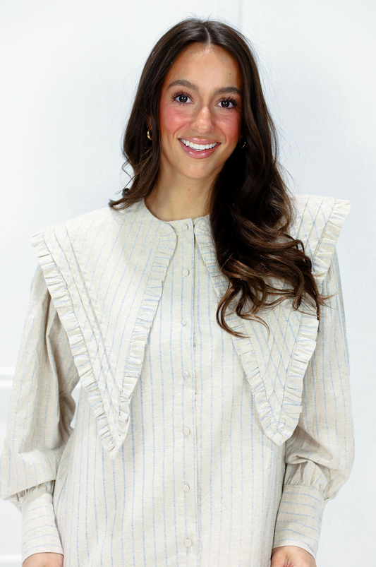 Sailor Collar Ruffle Blouse Oatmeal