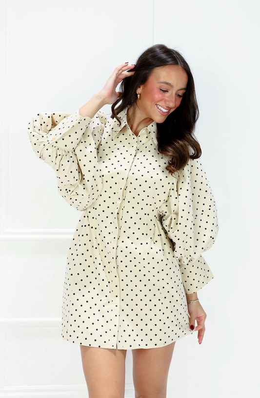 Big Sleeve Shirt Dress Taupe Polka Dot