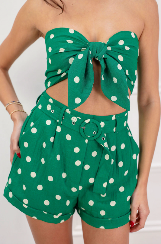 Green Polka Dot Scarf Top & Shorts Set Of 2