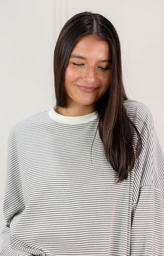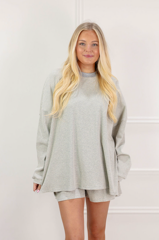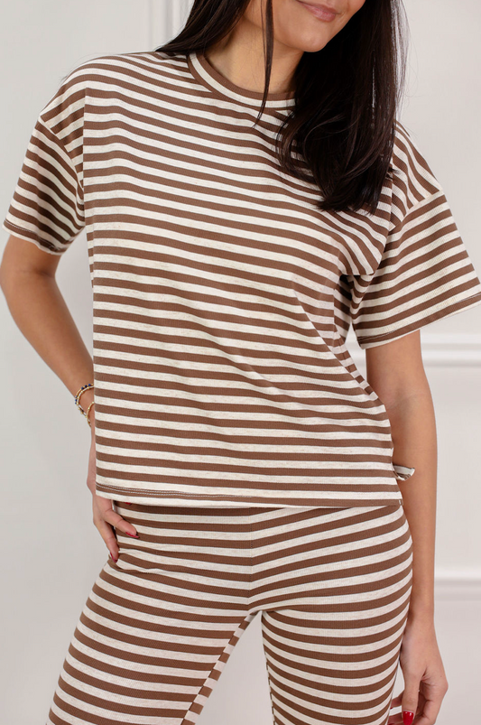 Ribbed Striped T-Shirt and Pants Set of 2 Brown
