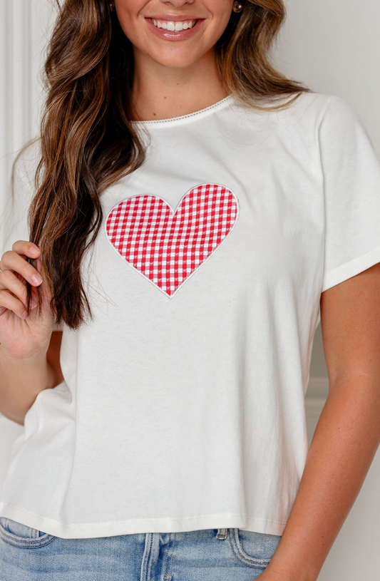 Gingham Heart Patch T-shirt