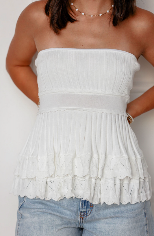Strapless Knit Peplum Top White