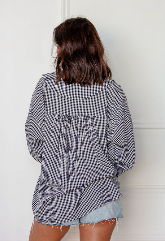 Long Sleeve Gingham Blouse Black