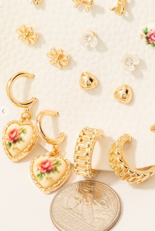 Floral Heart Stud Set Pink
