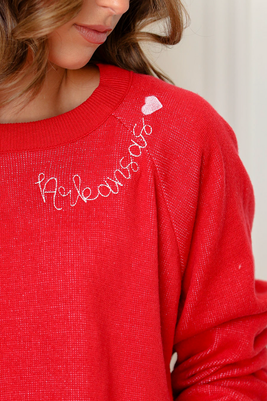 Long Sleeve Boat Neck Sweater Top Red/White