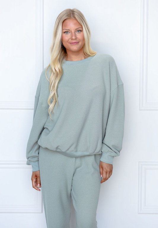 Waffle Knit Pullover & Joggers Set of 2 Sage Green