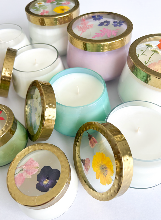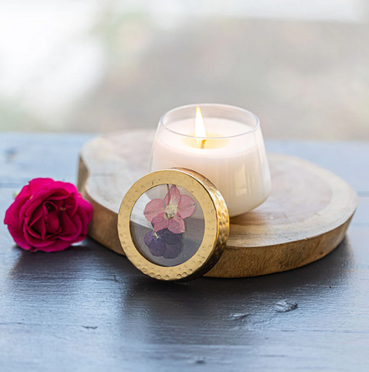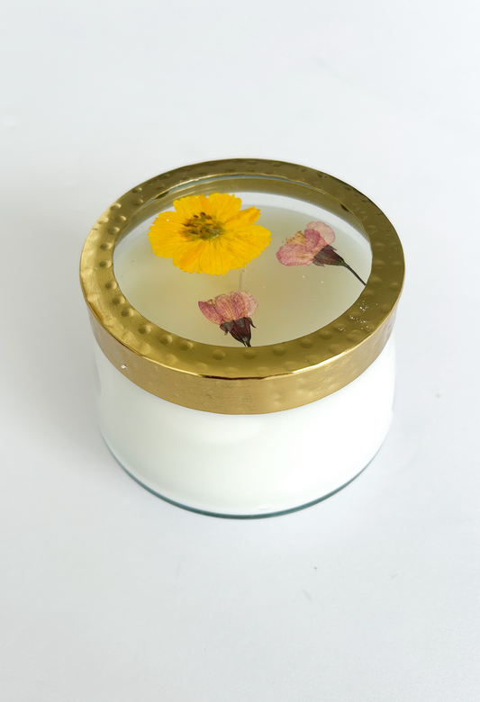 Lemon Blossom & Lychee Pressed Floral Candle - S