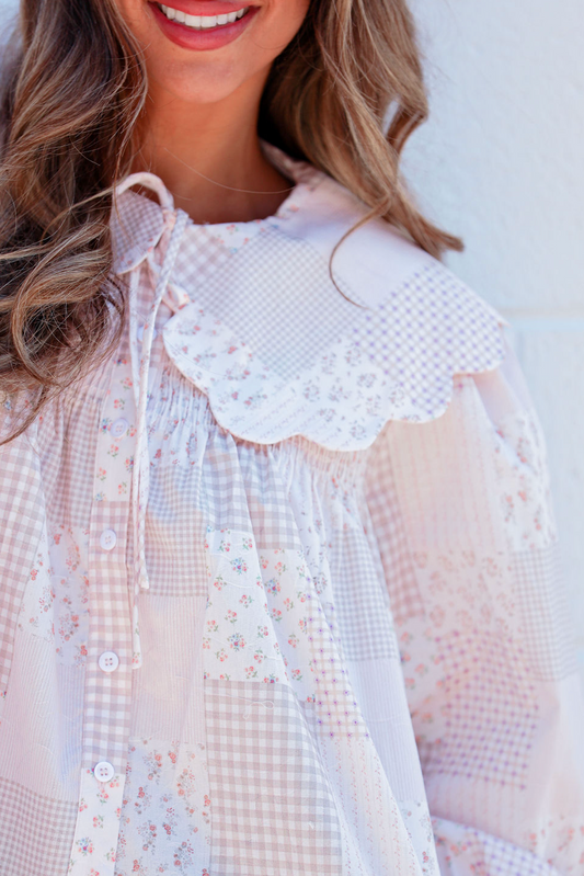 Elle Scallop Collar Tie Blouse