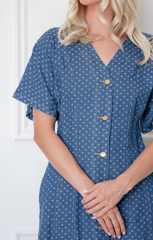 Denim Polka Dot Midi Dress