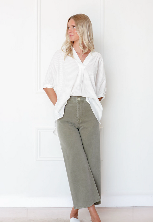 Wide Leg Stretch Pants Olive