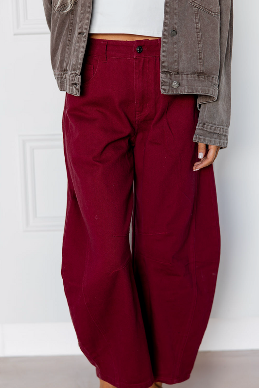 Burgundy Barrel Leg Jeans