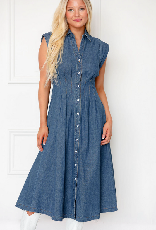Karly Fitted Midi Denim Dress