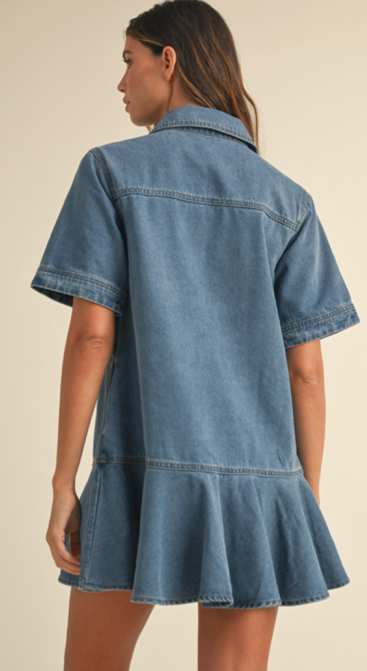 Denim Ruffle Hem Dress