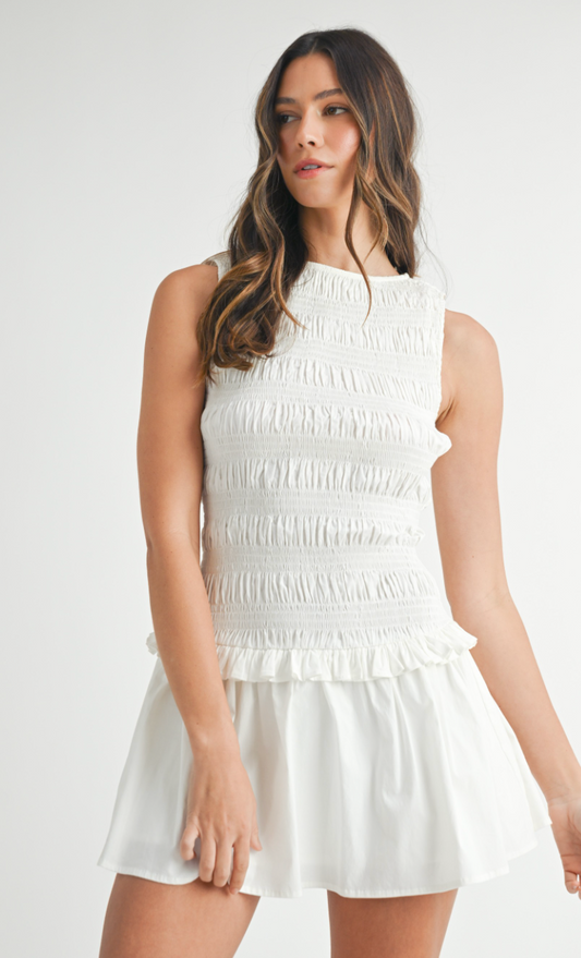 Smocked Waist Dress White
