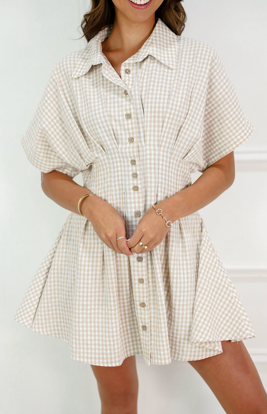 Gingham Collared Dress Beige