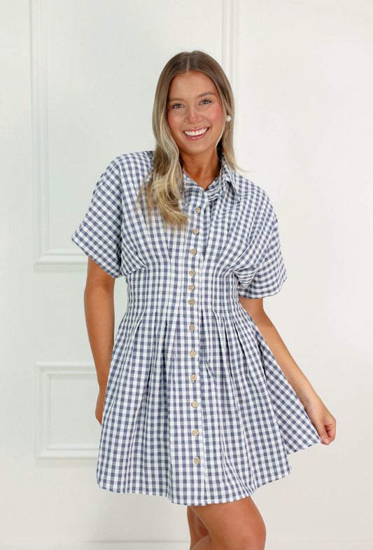 Gingham Collared Dress Navy