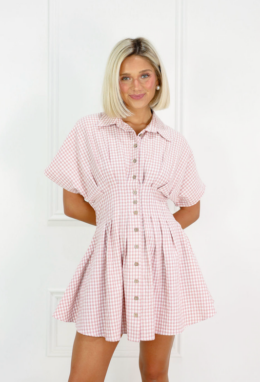 Gingham Collared Dress Strawberry