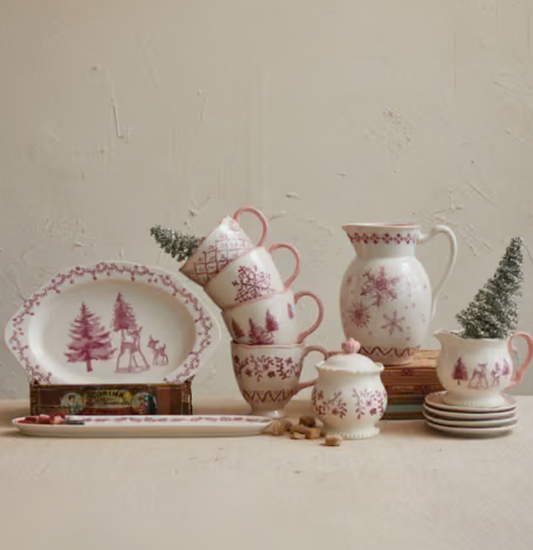 Vintage Christmas Cream & Sugar Set of 2