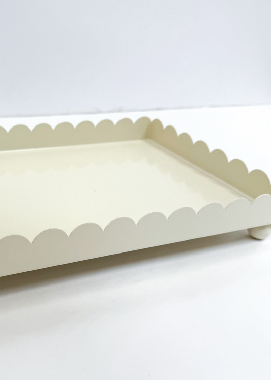 Cream Scallop Footed Tray