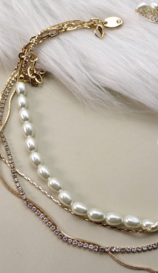Rhinestone Pearl Layer Necklace
