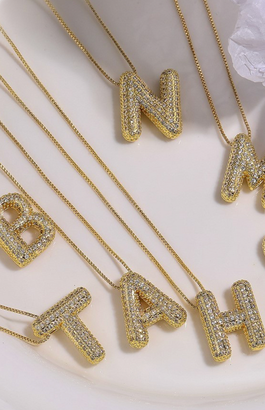 Rhinestone Bubble Initial Necklace