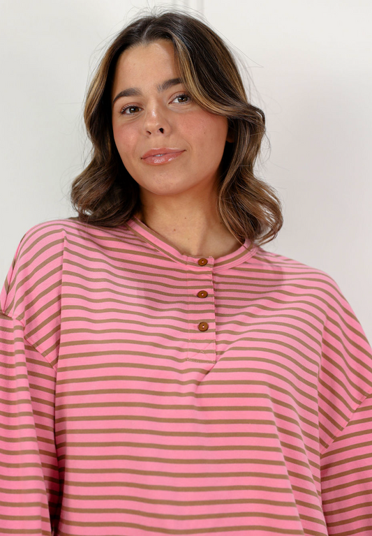 Pink/Brown Stripe Henley & Shorts Set of 2