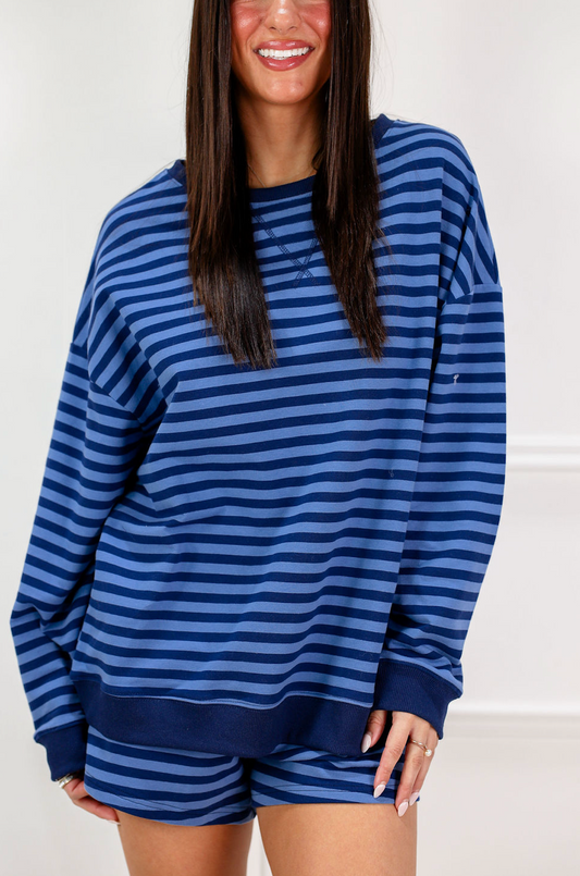 Oversize Stripe Sweatshirt & Shorts Set of 2 Blue