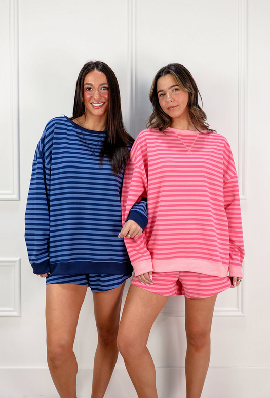 Oversize Stripe Sweatshirt & Shorts Set of 2 Pink