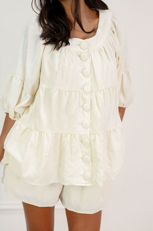 Buttons Tiered Top & Shorts Set of 2 Cream