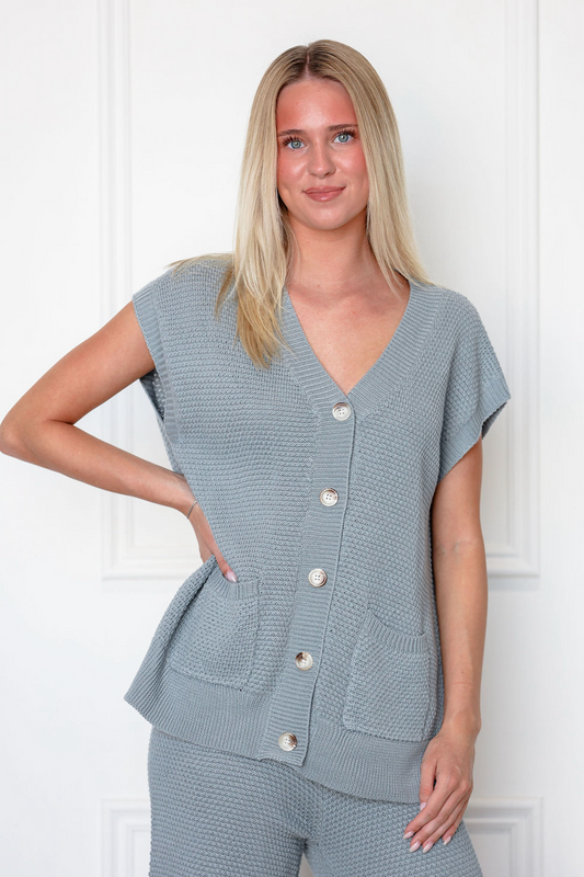 Grey Waffle Knit Vest & Pants Set of 2