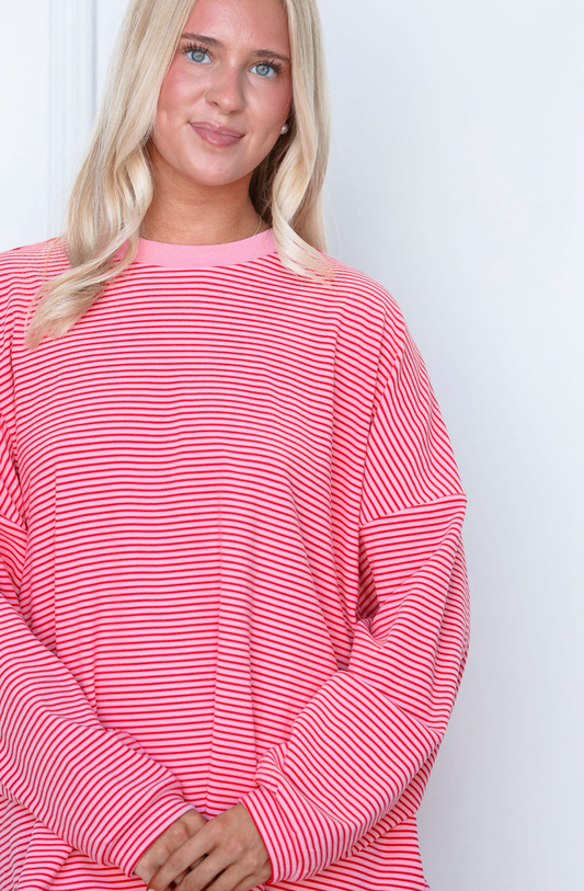 SOLD OUTStriped Fleece Oversize Top Pink