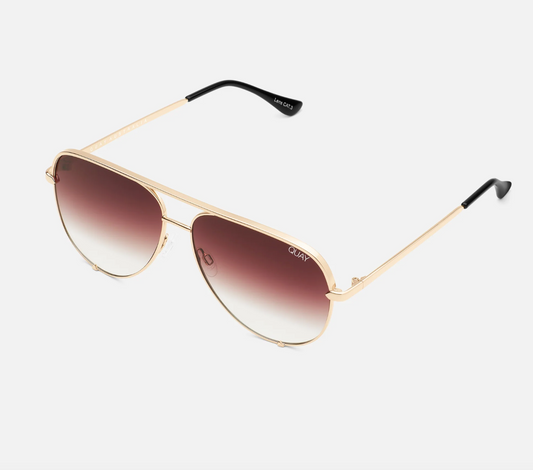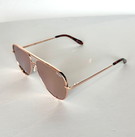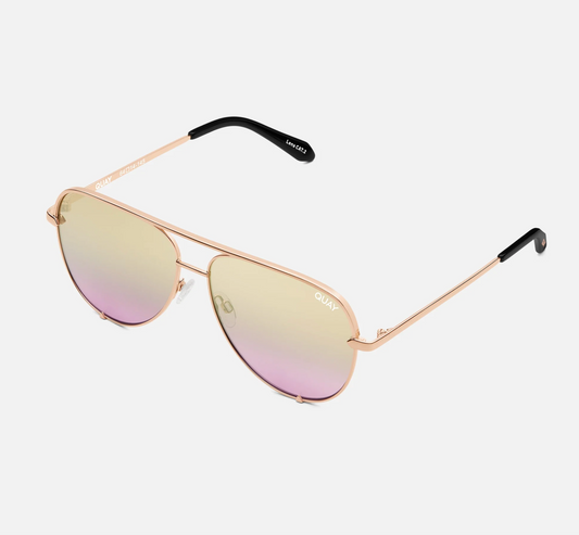 High Key Large Quay Sunglasses - Rose Gold/ Gold Lavender