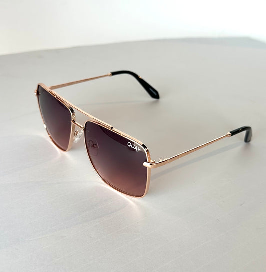 High Key Large Quay Sunglasses - Rose Gold/ Dark Rose