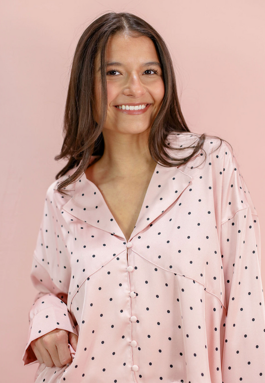 Pink Satin Polka Dot Pajamas Set of 2