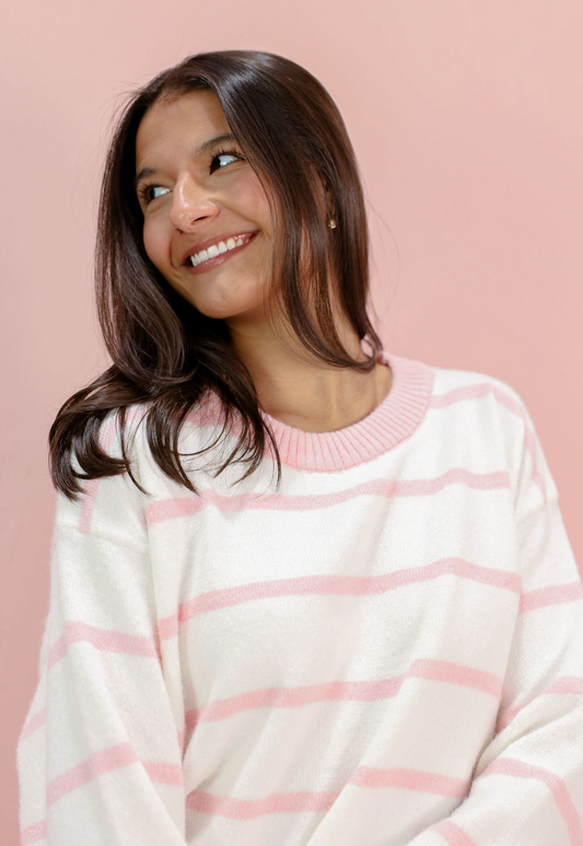 Stripe Crewneck Sweater Pink