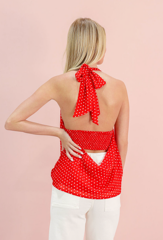 Polka Dot Halter Top Red