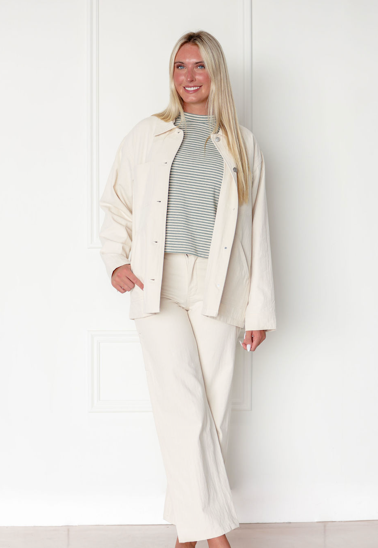 The Ava Natural Oversized Jacket is a laid-back layer with a soft, neutral tone, roomy fit, and easygoing feel—perfect for throwing on over any outfit.