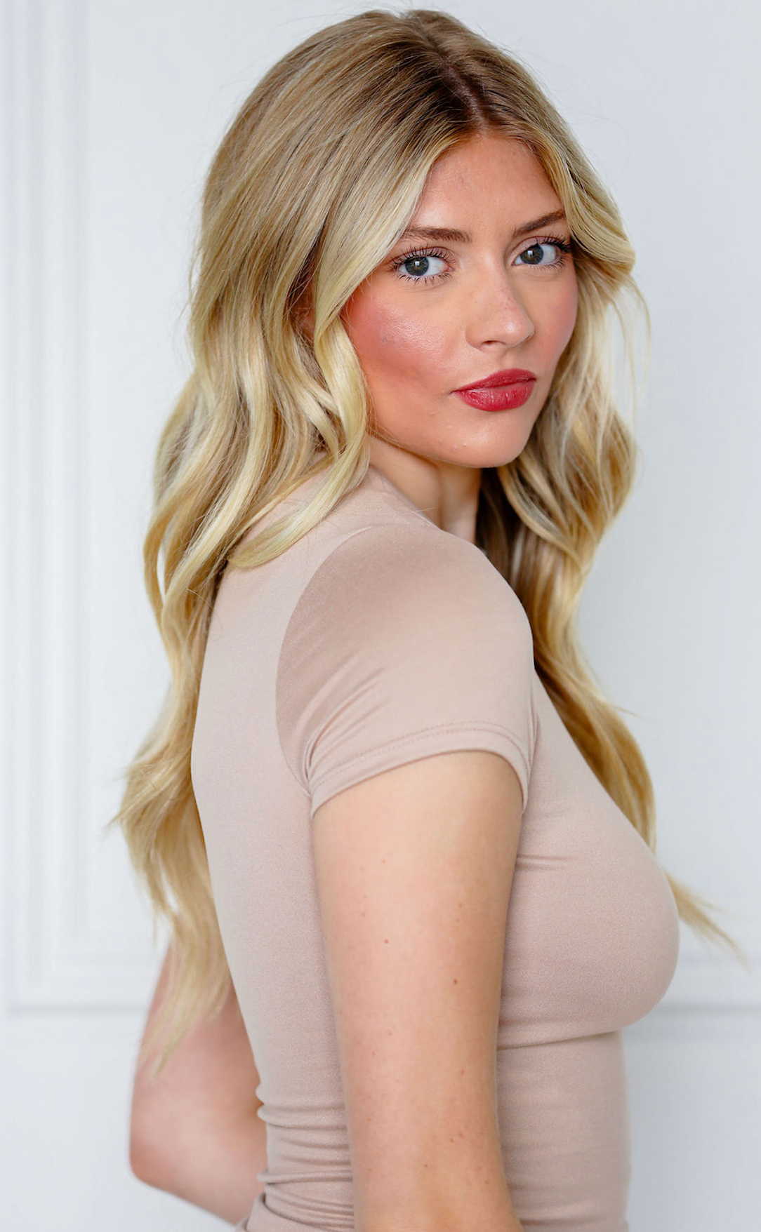 The Basic Short Sleeve Top in Beige is an easy neutral with a sleek silhouette and soft stretch feel. Finished with a mock neckline and fitted shape, it’s your everyday base but elevated.